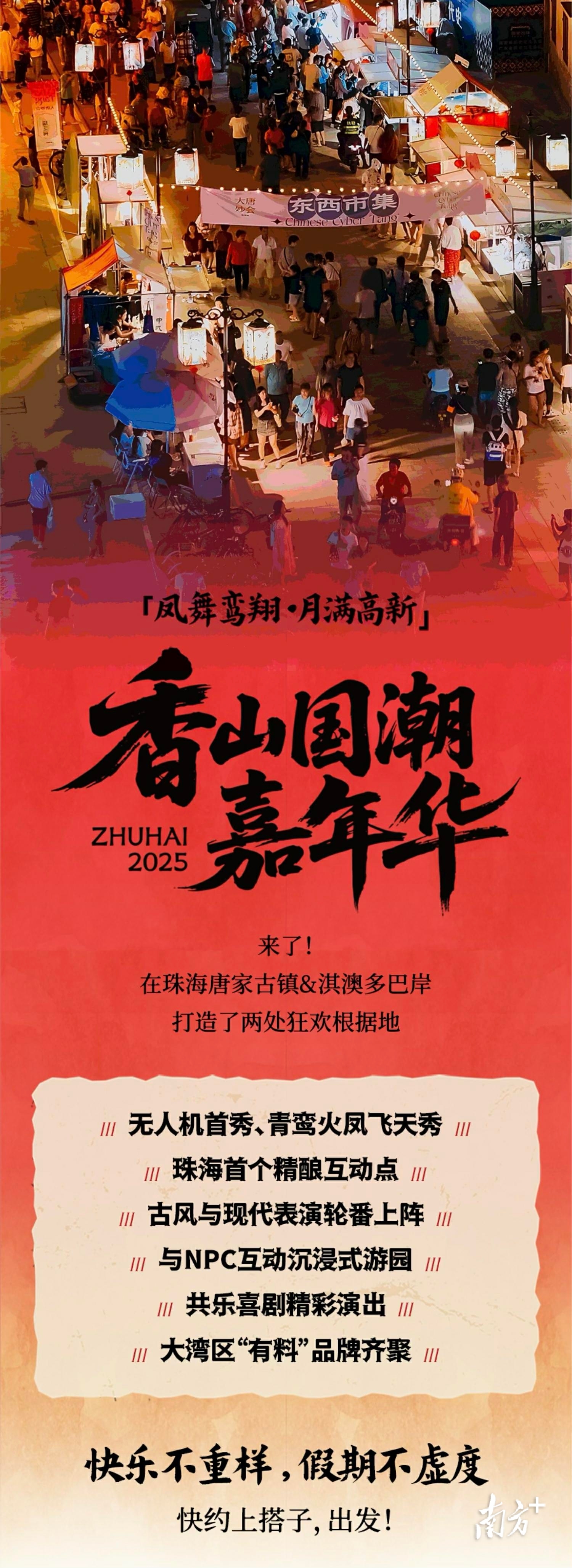 值得一提的是,澳门国际文化美食节也将于国庆期间登陆横琴、珠海,通过汇聚各地美食与文化活动,为市民游客打造多元消费新场景。活动现场将设风味食集、乡村振兴特色展销区、新茶饮主题展示区、“发现澳门”主播间、文艺表演等,其中主会场位于横琴华发商都,活动时间为9月30日至10月5日,分会场位于珠海华发商都活动时间为10月1日至10月5日。